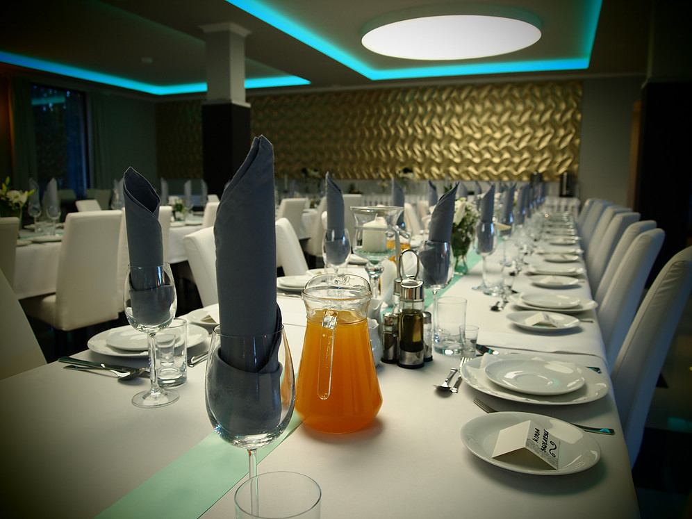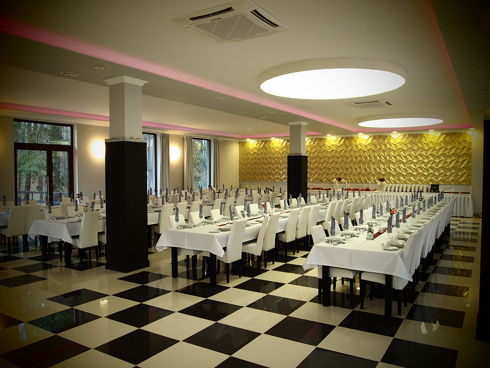 Duża, przestronna sala idealna do organizacji wesel i uroczystych bankietów oraz przyjęć okolicznościowych.